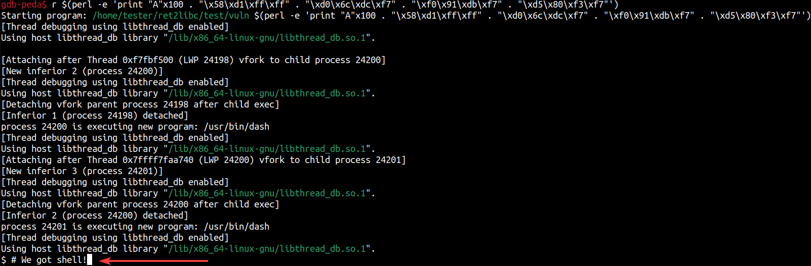 We got shell! We successfully took control of the pointer and instructed the program to utilize the already existing system() function alongside the "/bin/sh" string, allowing us to achieve access that wasn't previously expected by a developer.