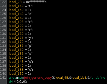 alloc::str::join_generic_copy(...); is TerryWare's method for joining the 9-char dictionary into a single string. Moving forward in the code also takes us to this:
