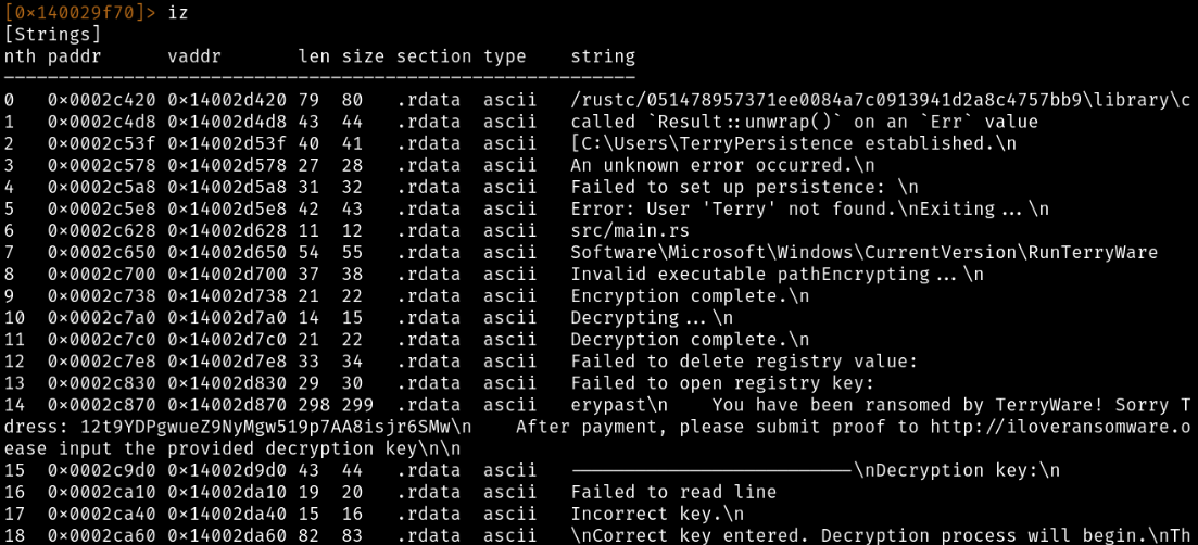 I've spend the past week or so learning Rust, and through some small research I found there weren't a lot of resources/challenges out there for BinEx/RE with Rust. The majority of my experience with BinEx/RE has been centered around analyzing binaries compiled with C on 32-bit architecture. So I took a crack at utilizing my limited Rust knowledge to create some simple ransomware, and primarily used Ghidra to step through the decompiled code.
