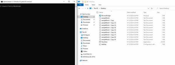 Once we have our AES key of e558e84dba2de0209ce8d1ec73db5d3b (which is the first 16 bytes of the SHA256 hash from "terrypass"), we'll call on encrypt_recursive() to begin the actual process of encrypting his files. This function steps through each file within our target directory of C:\Users\Terry\*, encrypts it with a randomized IV with rand::thread_rng().gen(), and adds the ".TW" file extension for TerryWare. Once this function has run out of files, it calls on the message() function.